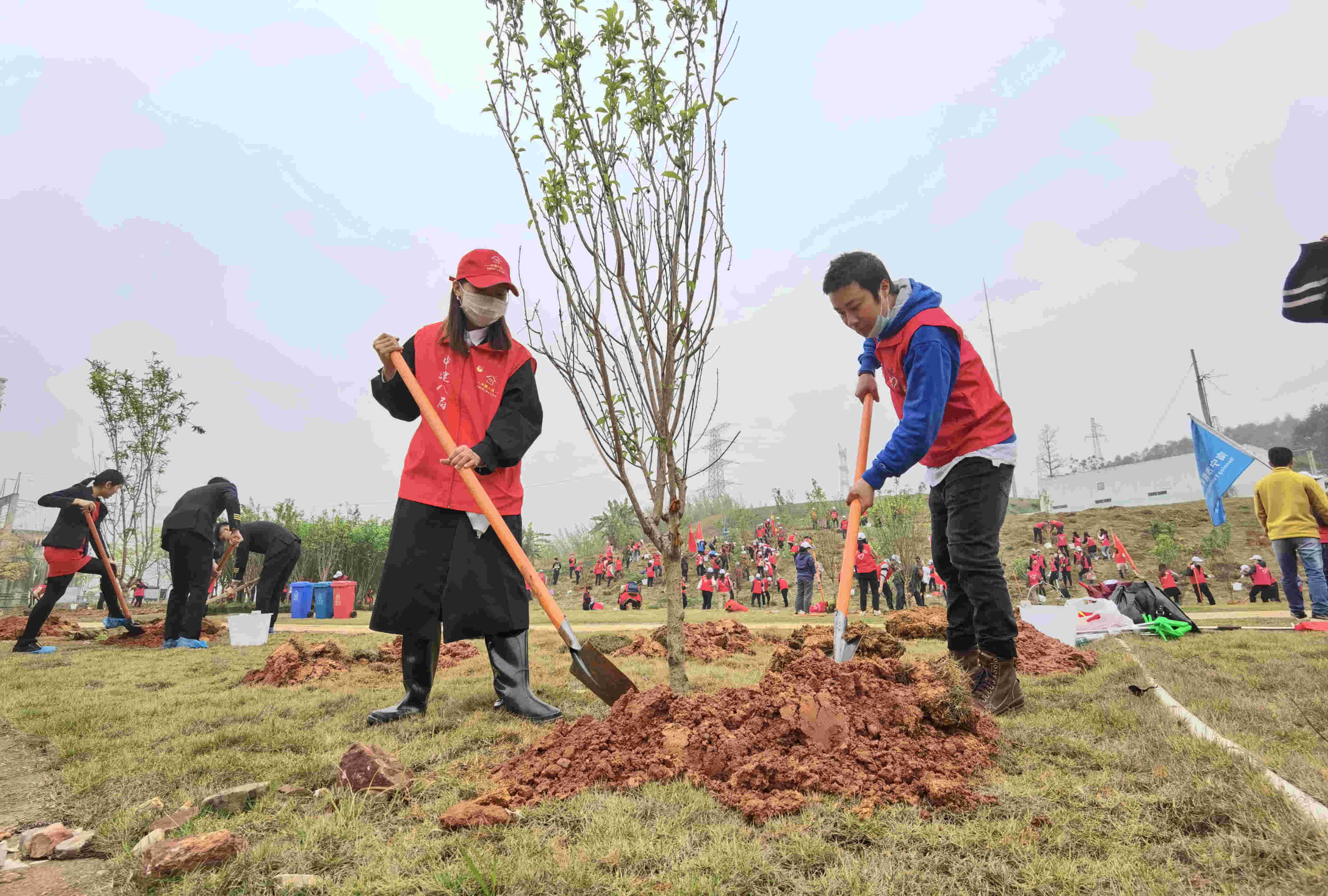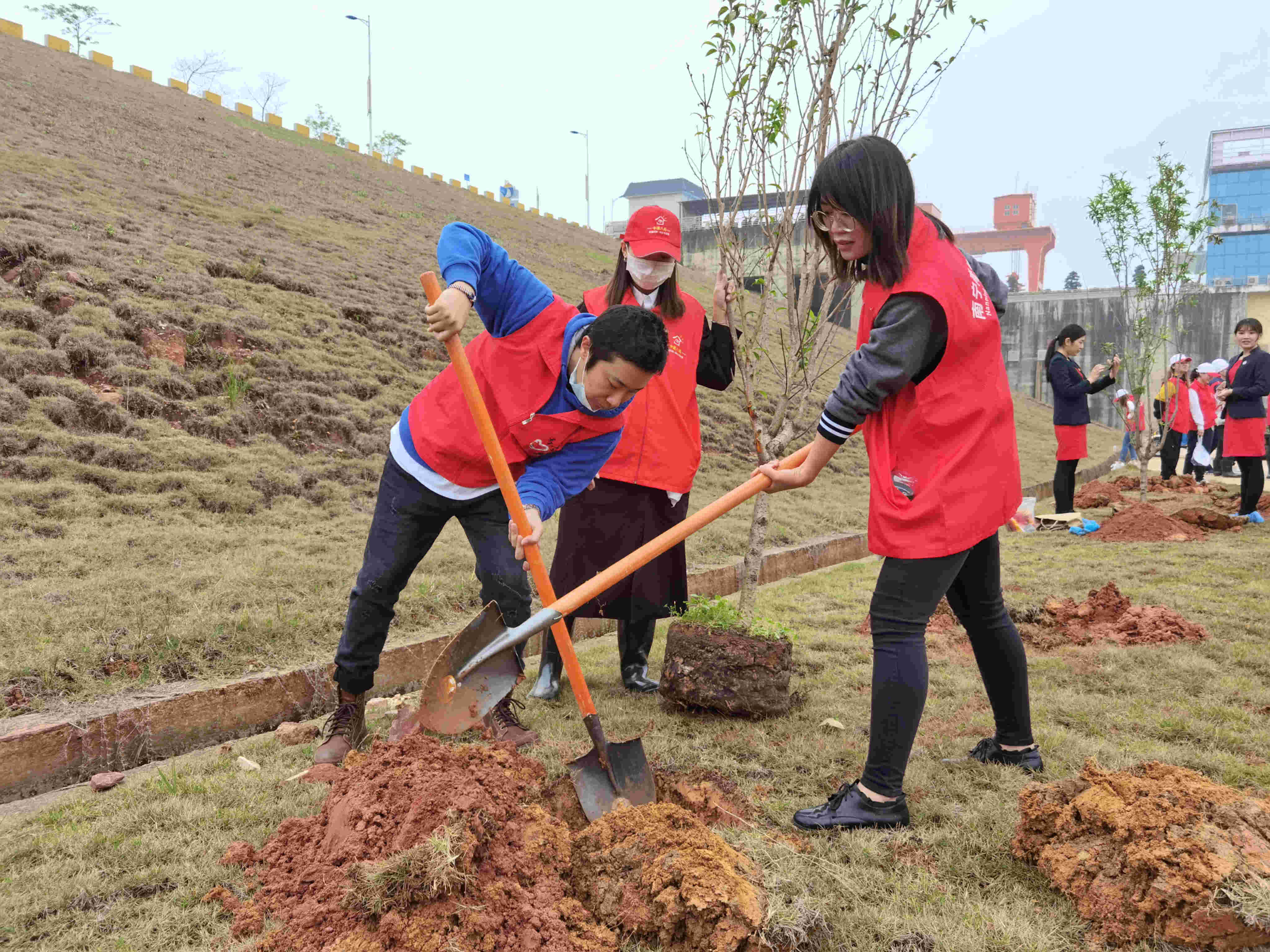 种一棵树,绿一方土,尽一份心,播一片希望。3月11日,在植树节来临之际,由南宁团市委主办的植树活动在南宁市老口航运枢纽护坡举行,威宁房地产公司机关党支部、项目公司党支部联合中建八局威宁青运村项目党支部党员志愿者积极参加,与在场的150名志愿者一起义务种下150棵绿树和清洁河道周边垃圾,以爱绿护绿的实际行动积极保护南宁邕江母亲河周边生态。