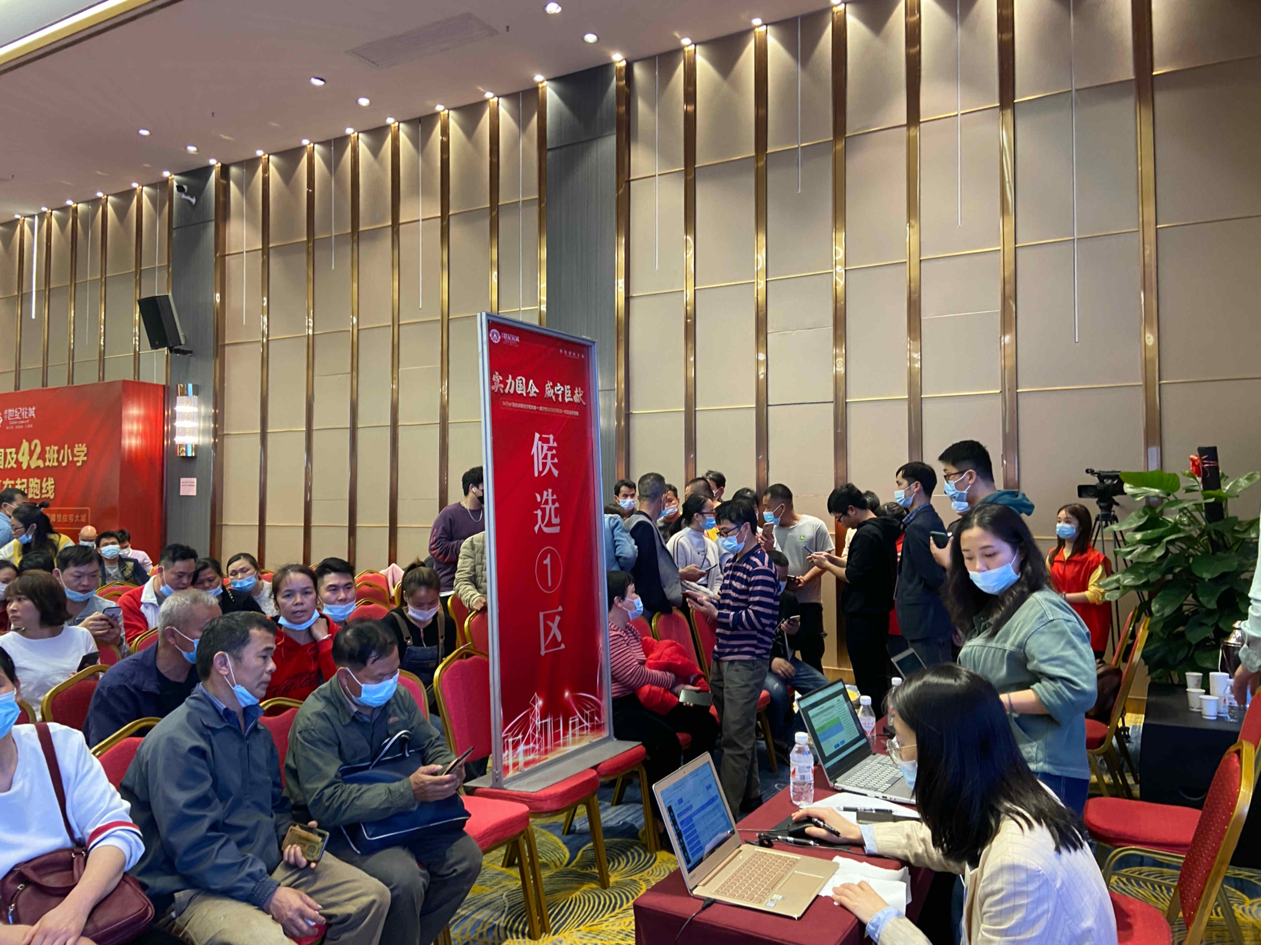 在选房当天的福霖大酒店人头攒动,气氛热烈,南宁市刘阿姨一家早早来到现场签到,她表示威宁世纪花城隔街就是吾悦广场,周边有两条地铁线,附近学校配齐,离那考河湿地公园也不远,加上价格特别有优势,所以他们特别希望能选到心仪的房子。