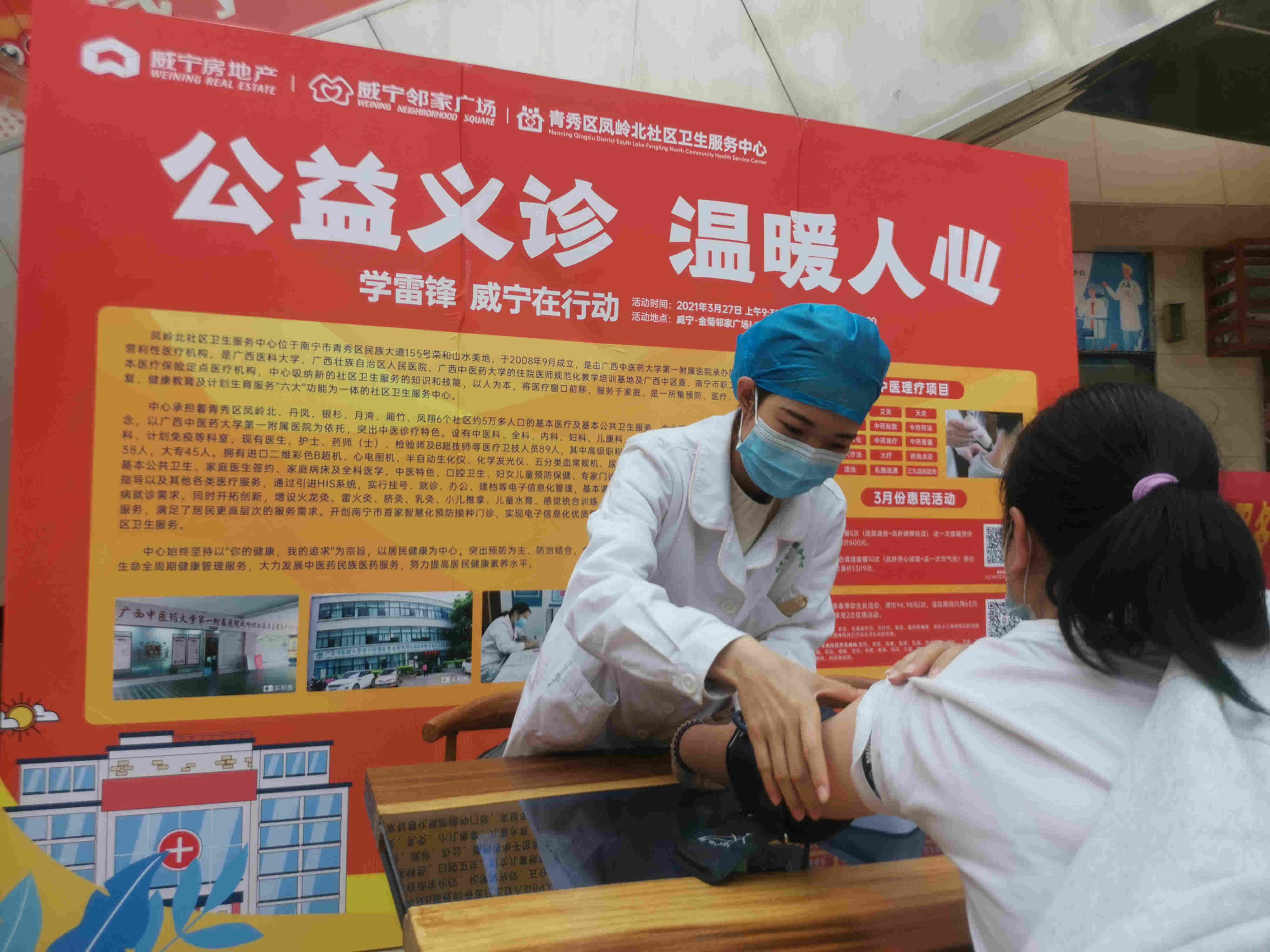 在义诊区,青秀区凤岭北社区卫生服务中心医生在为市民耐心地讲解健康知识;在垃圾分类公益宣传区,月湾社区工作人员精心设计互动趣味游戏,让市民在娱乐中学习掌握相关知识。3月27日,在威宁·金菊邻家广场格外温馨热闹,威宁房地产公司组织举办“邻里集市,幸福有约”学雷锋志愿服务活动,带动商家以多项免费体验打造“学雷锋”公益市集,共同建设有温度、有爱心、和睦的幸福邻家广场,积极响应学雷锋活动月号召,以实际行动喜迎建党100周年。