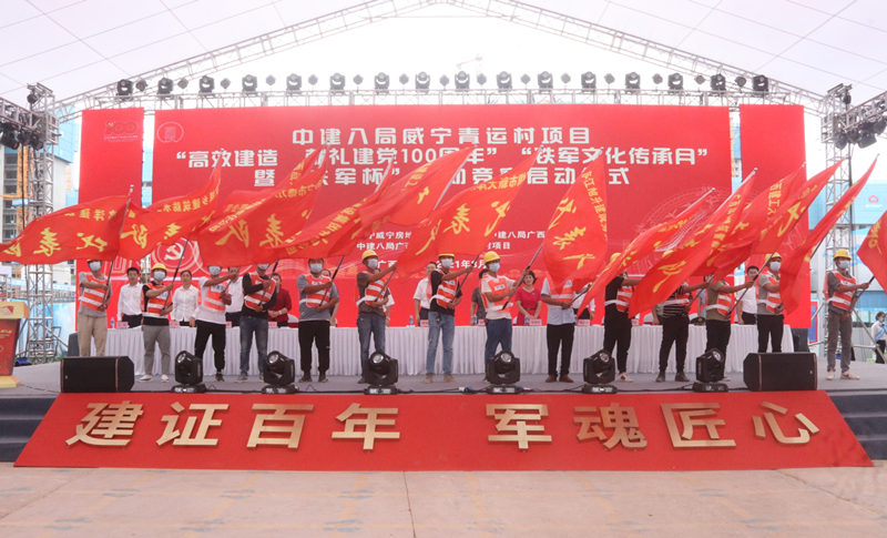 “起来,不愿做奴隶的人们,把我们的血肉,筑成我们新的长城……”8月1日,在庄严雄壮的国歌声中,威宁房地产公司联合中建八局广西分公司举行的威宁青运村项目“高效建造,献礼建党100周年”“铁军文化传承月”暨“铁军杯”劳动竞赛启动仪式拉开帷幕,标志着项目准军事化管理工作正式开启。