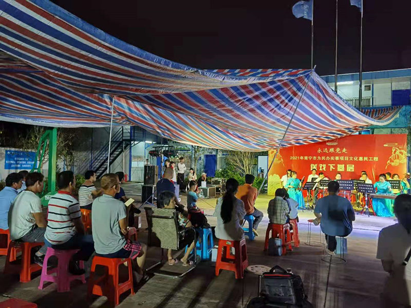 近日,由市人民政府主办,市文化广电和旅游局承办,市艺术剧院有限责任公司、市民族文化艺术研究院协办的“永远跟党走”2021年南宁市为民办实事文化惠民工程“送戏下基层”演出活动来到了威宁首府·德逸园工地,给工作在一线的城市建设者送上了丰盛的“文化大餐”。