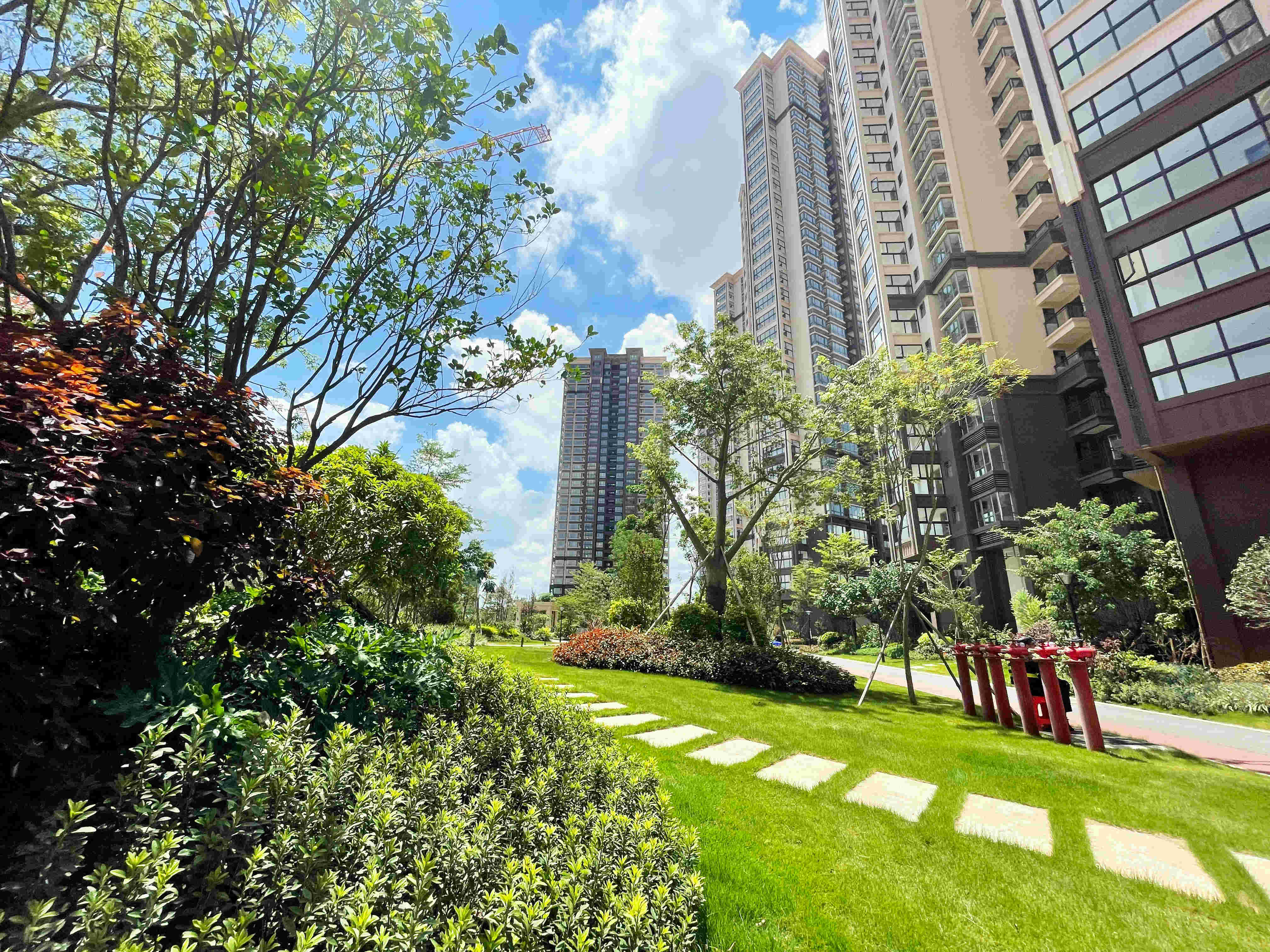 交房期间,正直南宁夏末,天空湛蓝,霞光明媚,在这样的景致衬托下,威宁·首府一期的风景迷人。楼栋主色调以棕黄色为主,整体建筑精致、典雅并错落有致。大气的色调搭配,考究的装饰点缀,各种元素交相辉映。景观设计上充分利用空间,将楼房嵌入花园中,大片的开花灌木、绿叶乔木和宿根花卉,让建筑与园林相得益彰,给人带来舒心、自然的生活质感。