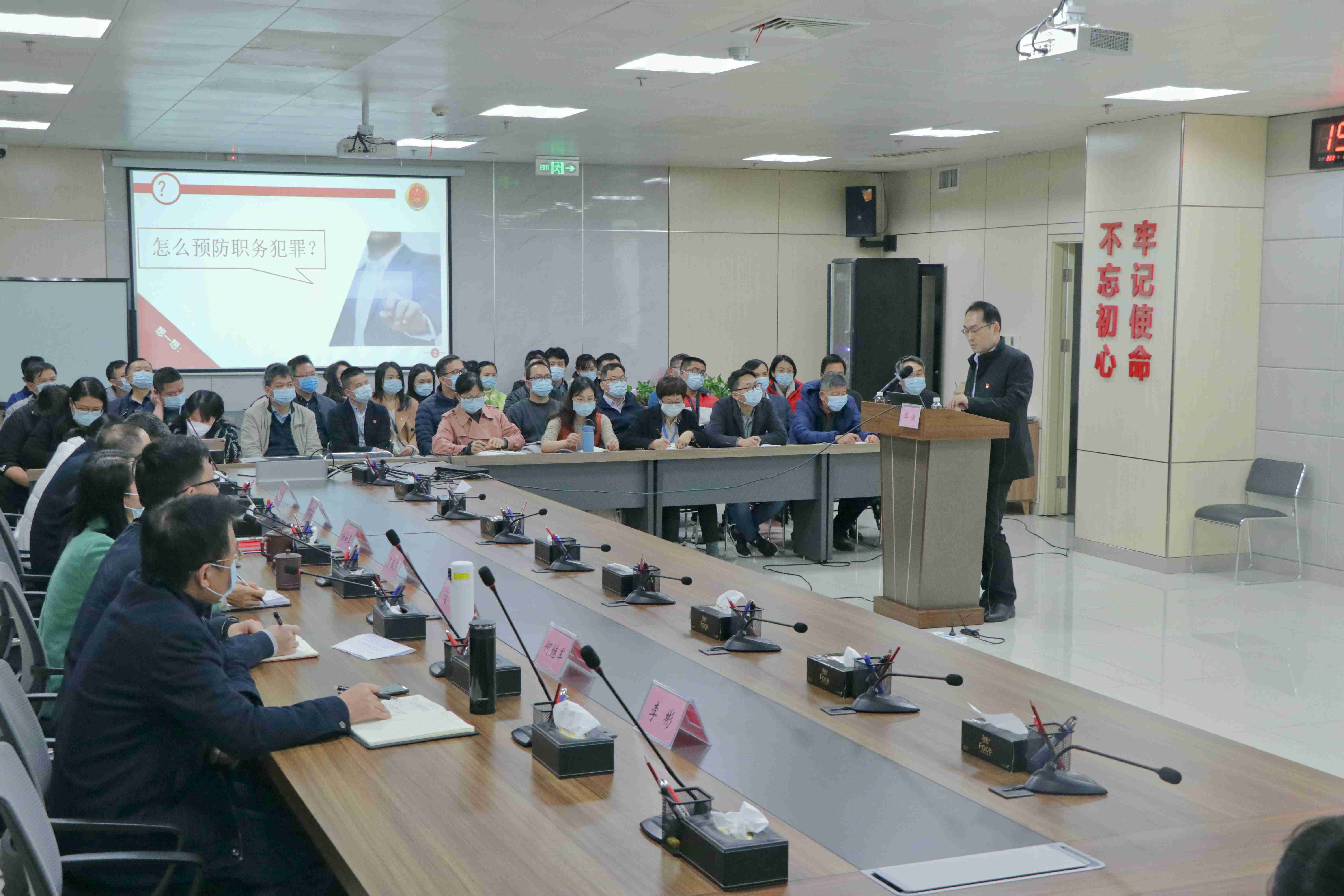 “贪如火,不遏则燎原;欲如水,不遏则滔天”。华健引用古语点出贪腐的危害,结合南宁市近段时期工程建设领域被提取公诉的案件,从知底线、明公私、懂敬畏三个方面讲授了预防工程建设领域腐败和职务犯罪的知识;紧扣党风廉政建设和企业生产经营业务,点出利用职权为他人谋取利益的危害;介绍工程项目,干预招投标等众多风险点。课程深入浅出,内容丰富,让在座的员工深刻认识到职务犯罪的危害,接受一次深刻的党风廉政洗礼。