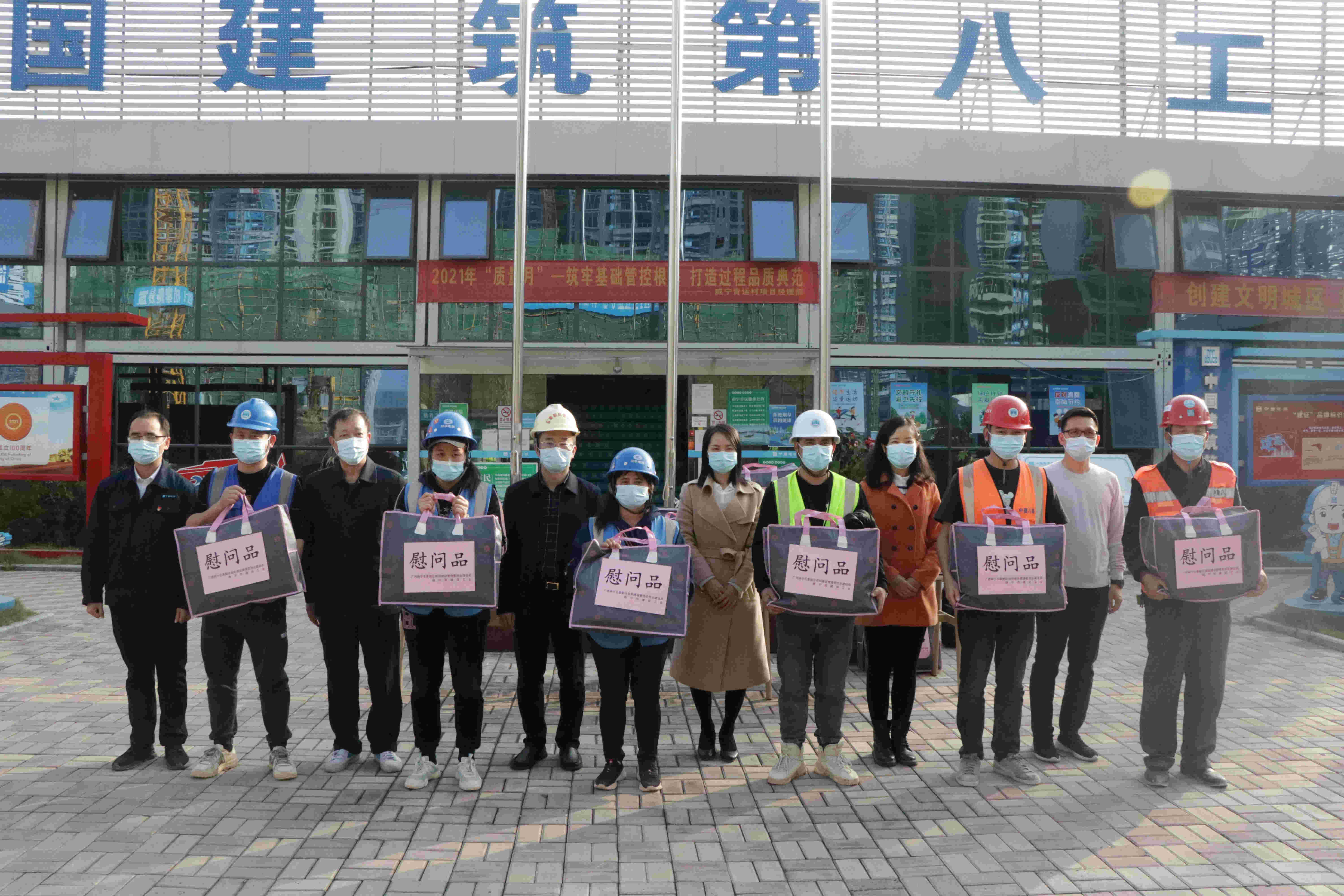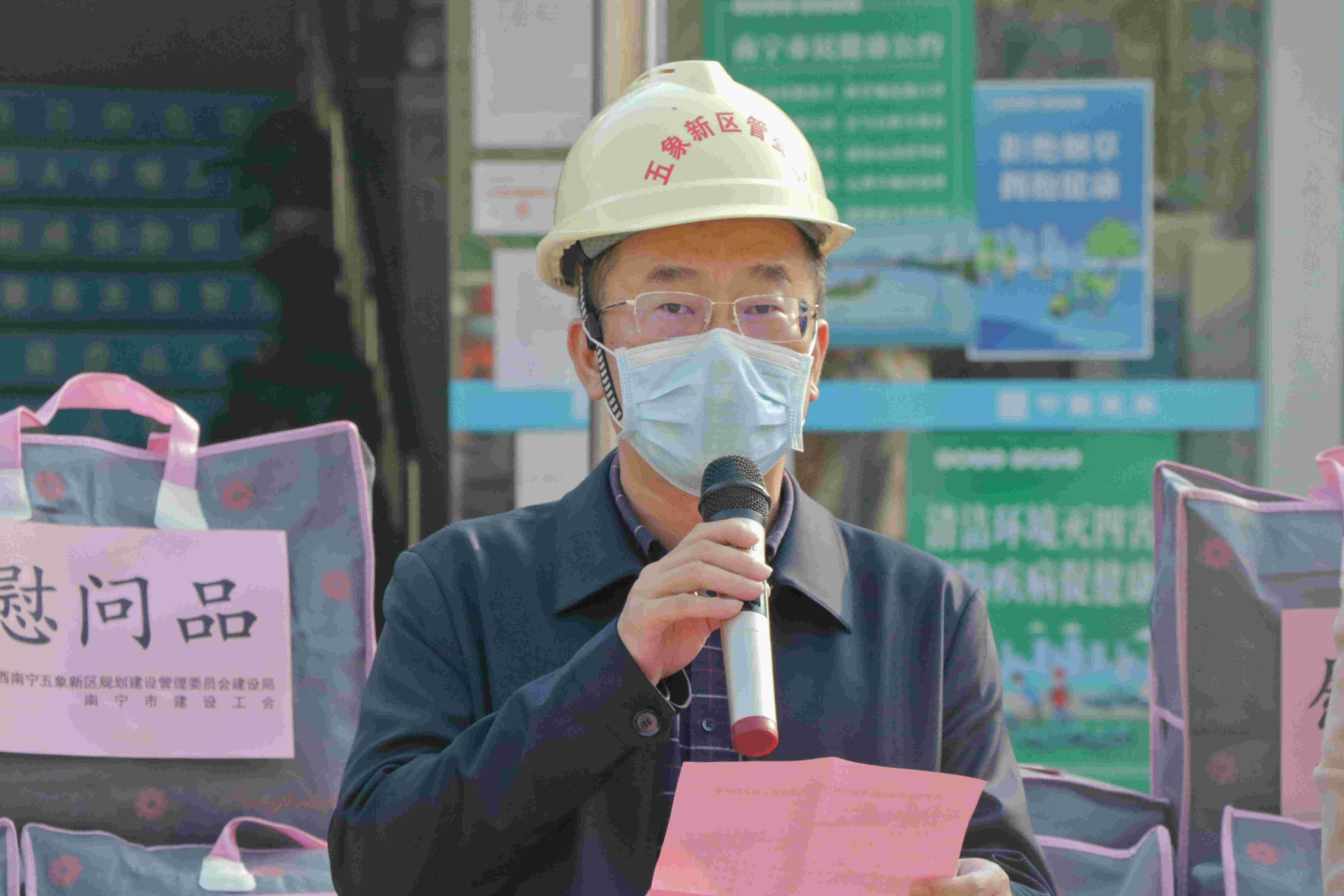 1月5日,南宁市建设工会顾问黄少古、五象新区管委会安监办主任蔡聪一行来到威宁青运村项目施工现场,走访慰问坚守工地施工一线的工人,详细了解生产生活情况,送上慰问品,并向大家致以诚挚的节日问候和新年祝福。