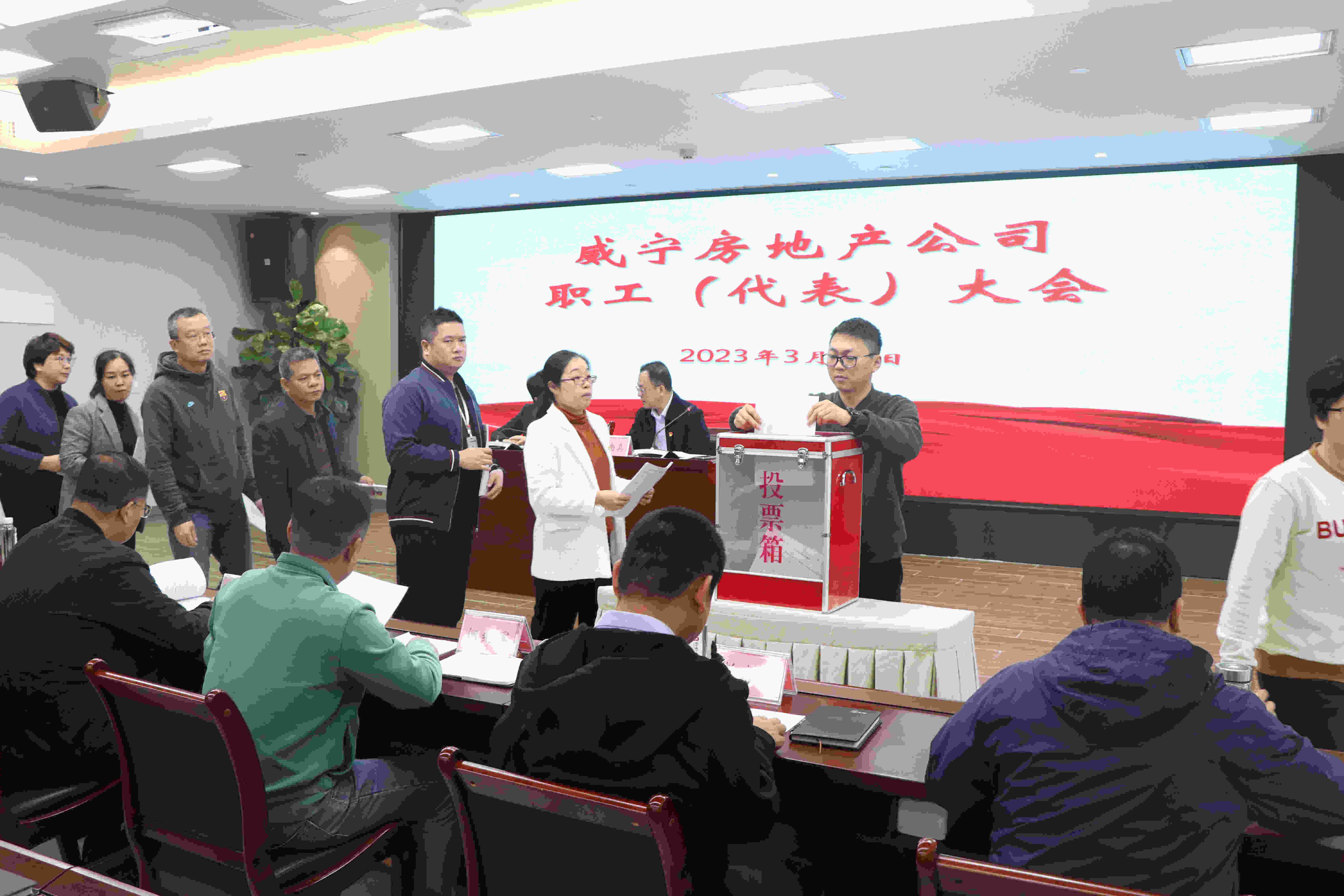 集团党委办公室,威宁房地产公司领导班子成员、中层管理人员、员工代表参加会议。