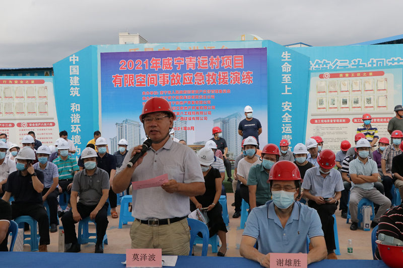 为扎实推进做好国资国企安全防范工作,8月9日下午,由南宁市国资委主办、南宁威宁集团承办的2021年第三季度安全生产工作会议暨有限空间事故应急救援演练观摩会在威宁青运村项目部举行。南宁威宁集团副总经理韦义勇参加会议,并就安全生产工作经验做法进行了交流。