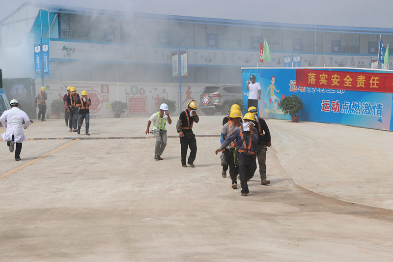 6月24日上午,威宁房地产公司所属建投公司联合南宁学院、广西建工集团第五建筑工程有限责任公司在南宁学院11#、12#学生宿舍项目开展消防应急演练,参加演练人员约60人。根据预先制定的演练流程,项目施工区域临时板房区突然冒起浓烟并有火光,现场工人急忙喊“着火了,着火了”,施工现场专职安全员发现火灾险情后立即打电话向管理人员报告,项目负责人立即到场,同时报监理和建设单位。管理人员立即启动《施工生产现场火灾事故应急救援预案》,吹响哨声,有序组织人员手拿毛巾捂鼻半蹲从火灾区域通过安全通道疏散到安全区域,同时召集灭火组参加灭火和救援,使用干粉灭火器等进行灭火,并及时设置警戒线,防止其他工人进入危险地点,最后火情得到扑灭,所有人员顺利逃到安全区域。